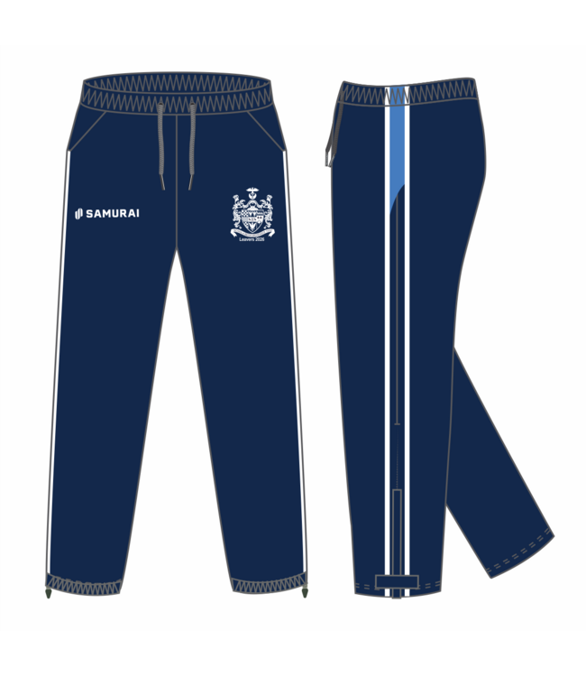 Samurai track pants featuring the school crest on the left leg. These track pants are the loose fitting style.